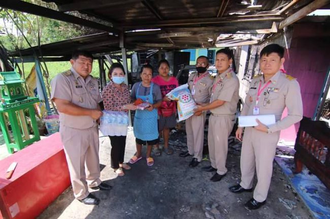 นายกเทศมนตรีเมืองลำตาเสา ลงพื้นที่ให้การช่วยเหลือบ้านผู้ประสบเหตุเพลิงไหม้บ้าน