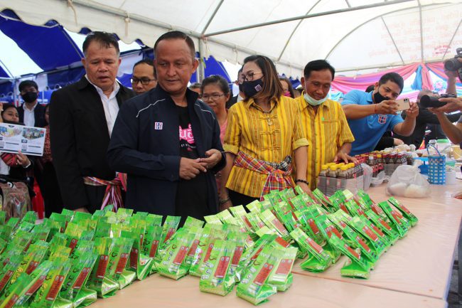 นายรักษ์พงษ์ เซ่งเจริญ ผอ.สทบ. กล่าวว่า “โครงการความร่วมมือเพื่อเพิ่มรายได้ให้กับสมาชิกกองทุนหมู่บ้านที่จัดขึ้นในวันนี้ ทางสำนักงานกองทุนหมู่บ้านและชุมชนเมืองแห่งชาติ หลายสาขา ได้นำสินค้าของสมาชิกกองทุนหมู่บ้าน อาทิ พืชผักผลไม้ รวมถึงอาหารทะเลแปรรูป และสินค้าอื่นๆ จากจังหวัด ร้อยเอ็ด กาฬสินธุ์ นครพนม ยโสธร สุราษฎร์ธานี นครศรีธรรมราช พังงา ชุมพร สระแก้ว สมุทรปราการ นครราชสีมา ขอนแก่น มหาสารคาม ชัยภูมิ เพชรบุรี และสตูล ซึ่งมีรวมมูลค่ากว่า 633,000 บาท”