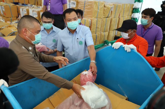 ได้แก่ เมทแอมเฟตามีน หรือยาบ้า น้ำหนักกว่า 18,303 กิโลกรัม (ประมาณ 203 ล้านเม็ด) มูลค่าประมาณ 40,674 ล้านบาทยาไอซ์น้ำหนักกว่า 5,878 กิโลกรัม มูลค่าประมาณ 12,932 ล้านบาท เฮโรอีน น้ำหนักกว่า 541 กิโลกรัม มูลค่าประมาณ 2,301 ล้านบาท ยาอี น้ำหนักกว่า 26 กรัม มูลค่าประมาณ 53,500 บาท ฝิ่น น้ำหนักกว่า 9.41 กิโลกรัม มูลค่าประมาณ 941,200 บาท โคคาอีน น้ำหนักกว่า 10.70 กิโลกรัม มูลค่าประมาณ 32 ล้านบาท และยาเสพติดให้โทษอื่น ๆ น้ำหนักกว่า 557 กิโลกรัม รวมหนักกว่า 25,301 กิโลกรัม มูลค่ากว่า 55,941 ล้านบาท