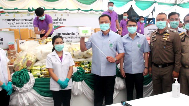นายอนุทิน ชาญวีรกูล รองนายกรัฐมนตรีและรัฐมนตรีว่าการกระทรวงสาธารณสุข กล่าวว่า รัฐบาลจึงได้เล็งเห็นถึงความสำคัญในการขจัดยาเสพติดให้โทษให้หมดไปทุกรูปแบบ โดยในปีนี้ถือเป็นครั้งที่ 50 แล้ว และเป็นครั้งใหญ่ที่สุดในประวัติศาสตร์ รวมหนักกว่า 25,301 กิโลกรัม มูลค่ากว่า 55,941 ล้านบาท และเนื่องจากจำนวนยาเสพติดให้โทษของกลางที่จะเผาทำลายในปีนี้มีจำนวนมาก จึงได้กำหนดวันเผาทำลายเพิ่มเติมในวันที่ 13-14 กรกฎาคม2563 โดยของกลางทั้งหมดจะถูกนำไปเผาทำลายที่ศูนย์บริหารสาธารณูปโภคและสิ่งแวดล้อม นิคมอุตสาหกรรมบางปะอิน จ.พระนครศรีอยุธยา ด้วยวิธีไพโรไลติก อินซิเนอะเรชั่น (Pyrolytic Incineration)