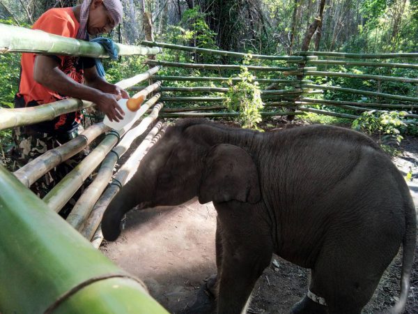 รวมทั้งเจ้าหน้าที่สถานีเพาะเลี้ยงสัตว์ป่าห้วยขาแข้ง ทำการฟื้นฟูลูกช้างให้กลับมาอ้วนท้วนสมบูรณ์โดยเร็ว