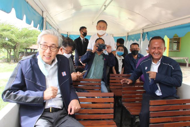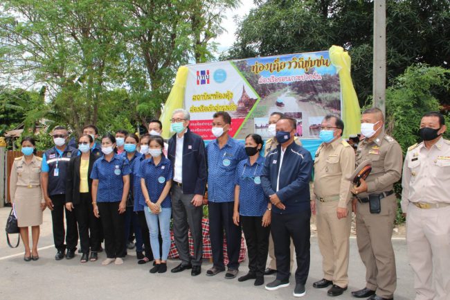 จากนั้น รองนายกรัฐมนตรี นำคณะฯ เยี่ยมชมโรงสีข้าวชุมชนที่จัดตั้งขึ้นเพื่อให้สมาชิกกองทุนหมู่บ้านและประชาชนในชุมชนสามารถนำข้าวเปลือกมาสีได้ใกล้ขึ้น ลดค่าใช้จ่ายของเกษตรกรลง และชมธนาคารอิฐมอญที่ได้มีการรับซื้อและรับจำนำอิฐมอญ ซึ่งเป็นผลผลิตของสมาชิกฯ เพื่อให้สมาชิกฯได้มีเงินทุนหมุนเวียนไว้ใช้ในช่วงเกิดการแพร่ระบาดของไวรัสโควิด-19 และได้ลงเรือตามโครงการอนุรักษ์คลองอ้อมเกาะเพื่อการท่องเที่ยวทางน้ำที่ได้รับงบประมาณในโครงการเสริมสร้างความเข้มแข็งของเศรษฐกิจฐานรากเพื่อการพัฒนาอย่างยั่งยืน นำไปสร้างท่าเทียบเรือเพื่อการท่องเที่ยวทางน้ำ และเป็นแหล่งเรียนรู้ให้กับกองทุนฯต่างๆ จากทั่วประเทศ ที่สนใจได้เข้ามาศึกษาดูแลงานเพื่อกลับไปพัฒนาชุมชนของตนเอง