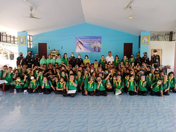 กระปุกออมสิน และแอลกอฮอล์ล้างมือเพื่อป้องกันโรค ไวรัสโควิด-19 โดยนำมามอบให้กับคณะครู-ผู้ปกครอง และนักเรียนโรงเรียนบ้านหนองไผ่