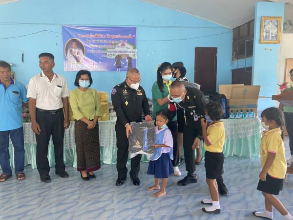 พลตรีวัชชรินทร์ สุวรรณรินทร์ เจ้ากรมการสารวัตรทหารบก และคณะที่ปรึกษา-ผู้ใหญ่ใจดี นำอุปกรณ์การเรียนการศึกษา มีกระเป๋านักเรียน