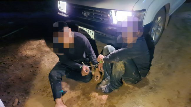 กลุ่มคนร้ายและเจ้าหน้าที่ ซึ่งเจ้าหน้าที่สามารถจับกุมผู้ต้องหาได้ 2 ราย มีคนร้ายได้รับบาดเจ็บบริเวณขา