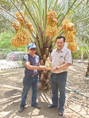โดย คุณวีรพจน์ อร่ามรัตน์ เจ้าของสวนอินทผาลัมแห่งนี้ ได้เฝ้าทะนุถนอมดูแล จากการบ่มเลี้ยงลำต้นให้มีสภาพที่สมบูรณ์ จนผลิดอกออกผล ก่อนจะเก็บเกี่ยวผลผลิตสู่ผู้บริโภค โดยท่านที่ไปถึงสวน สามารถเดินเก็บชิมได้จากต้น และสามารถคัดเลือกช่อ หรือพวงของอินทผาลัมสดๆ ได้เลย เพราะเจ้าของสวนเข้าใจลูกค้า จึงเปิดบริการแบบเป็นกันเอง ซึ่งในขณะนี้ท่านสามารถสั่งซื้อได้ขายในราคากิโลกรัมละ 450 บาท ซึ่งในราคานี้รวมค่าจัดส่งแล้ว