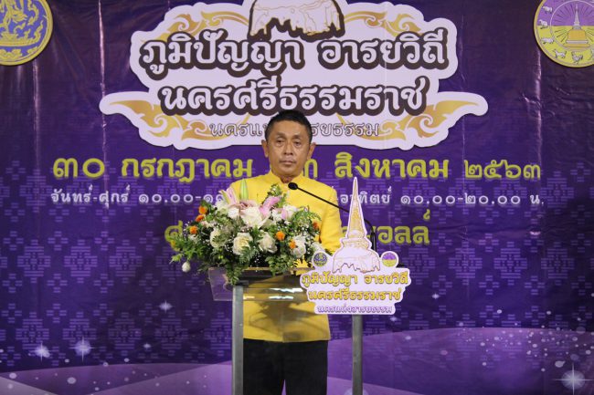 ผู้ว่าราชการจังหวัดนครศรีธรรมราช เปิดงาน “ภูมิปัญญา อริยะวิถี ของดีเมืองคอน” เพื่อเจาะตลาดส่งตรงสินค้าถึงมือคนกรุง และเพิ่มโอกาสการพัฒนาศักยภาพในการแปรรูปผลิตภัณฑ์ที่มีคุณภาพมาตรฐานตรงกับความต้องการของผู้บริโภค