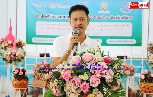 นายประเสริฐ นาคนิคาม ผู้อำนวยการฝ่ายชุมชนสัมพันธ์ บริษัท ซุปเปอร์เอิร์ธ เอนเนอร์ยี 6 จำกัด และตัวแทนจาก บริษัท เอวาแกรนด์ เอ็นเนอร์ยี่ จำกัด , บริษัท ศแบงยั่งยืน พิจิตร จำกัด ซึ่งโรงไฟฟ้าชีวมวลทั้ง 3 โรง ตั้งอยู่ในนิคมอุตสาหกรรมภาคเหนือตอนล่างจังหวัดพิจิตร เพื่อมอบให้กับโรงเรียนต่างๆในเขต ตำบลหนองหลุม และ