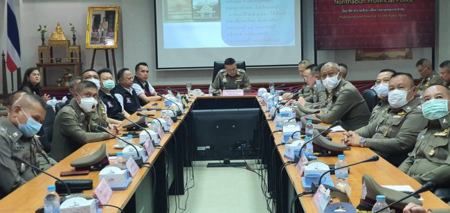 โดยพล.ต.อ.นเรศ นันทโชติ ที่ปรึกษาพิเศษ ตร. ขึ้นรับการเคารพจากกองเกียรติยศจากข้าราชการตำรวจ จ.นนทบุรี บริเวณลานหน้า ภ.จว.นนทบุรี จากนั้นได้เข้าสู่วาระการประชุม โดย พ.ต.อ.ดิเรก ยศนันท์ ผกก.สส.ภ.จว.นนทบุรี เป็นผู้บรรยายสรุปภาพรวม และสถานภาพการโจรกรรมรถยนต์ รถจักรยานยนต์ ภายในพื้นที่ จว.นนทบุรี ซึ่งผลการปฎิบัติงานเป็นที่น่าพอใจ และสามารถติดตามจับตัวผู้ก่อเหตุได้เกือบทั้งหมด