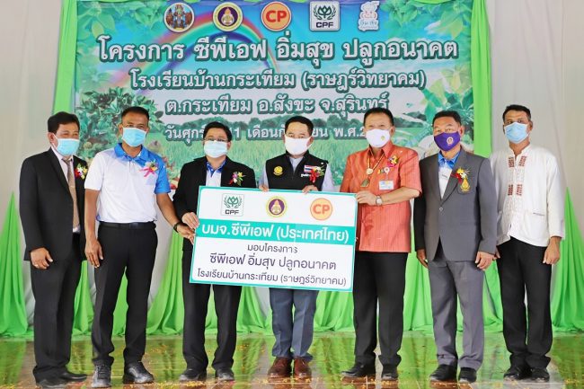 ซีพีเอฟ ในฐานะผู้นำธุรกิจเกษตรอุตสาหกรรมและอาหารครบวงจรที่มีวิสัยทัศน์เป็น“ครัวของโลก” มุ่งมั่นให้เด็กและเยาวชนเข้าถึงอาหาร ส่งเสริมกระบวนการเรียนรู้และการสร้างทักษะในด้านการผลิตอาหาร โดยร่วมกับภาคีพันธมิตร ดำเนินโครงการเลี้ยงไก่ไข่เพื่ออาหารกลางวันนักเรียน และ โครงการซีพีเอฟ อิ่ม สุข ปลูกอนาคต และล่าสุด นำร่องพัฒนาโรงเรียนบ้านกระเทียม(ราษฎร์วิทยาคม) เป็นแหล่งเรียนรู้ทักษะการจัดการด้านการผลิต การตลาด การจำหน่าย ฯลฯ ซึ่งเมื่อเร็วๆนี้ นายไกรสร กองฉลาด ผู้ว่าราชการจังหวัดสุรินทร์ เป็นประธานพิธีส่งมอบ “โครงการซีพีเอฟ อิ่ม สุข ปลูกอนาคต” ให้โรงรียน โดยมี น.สพ.จตุรงค์ โยธารักษ์ รองกรรมการผู้จัดการอาวุโส ธุรกิจสุกร ซีพีเอฟ เป็นตัวแทนส่งมอบโครงการฯ ให้นายสุเทพ เกิดสมนึก ผู้อำนวยการโรงเรียน คณะครู และนักเรียน