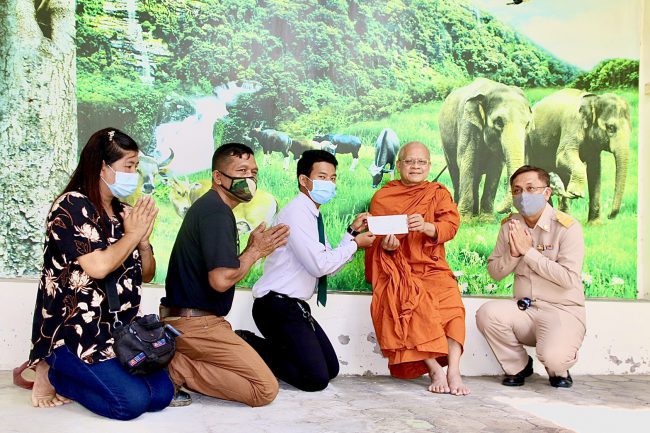 “พระเท้าเปล่า” ตัวแทนเจ้าอาวาสวัดพระราม 9 มอบสินไหมมรณกรรมแก่ทายาทผู้รับผลประโยชน์อาสาสมัครพิทักษ์ช้างป่า ที่ประสบอุบัติเหตุเสียชีวิตพร้อมภรรยา ในโครงการกองทุนรักคนเท่าช้าง
