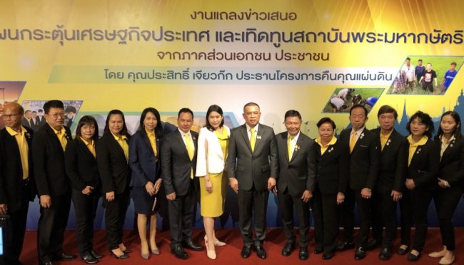แถลงข่าว “เสนอแผนกระตุ้นเศรษฐกิจประเทศและเทิดทูนสถาบันพระมหากษัตริย์ จากภาคส่วนเอกชน ประชาชน โดย คุณประสิทธิ์ เจียวก๊ก ประธานโครงการคืนคุณแผ่นดิน”