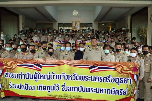 อยุธยา -ชมรมกำนัน ผู้ใหญ่บ้าน จังหวัดพระนครศรีอยุธยา เข้ายื่นหนังสือกับผู้ว่าราชการจังหวัดพระนครศรีอยุธยา เพื่อแสดงจุดยืนในเรียกร้องปกป้องสถาบันสำคัญของชาติ