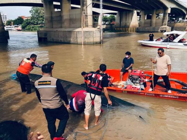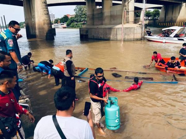 รายงานความคืบหน้า เมื่อเวลา 16.45 น. เจอผู้สูญหายแล้ว จมอยู่หน้าโป๊ะ ตรงที่เรือชนกัน