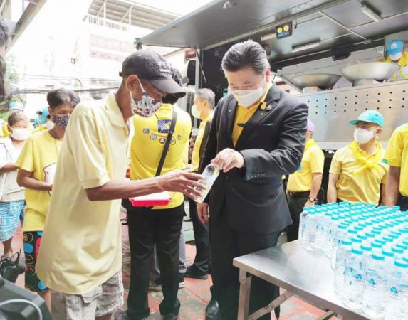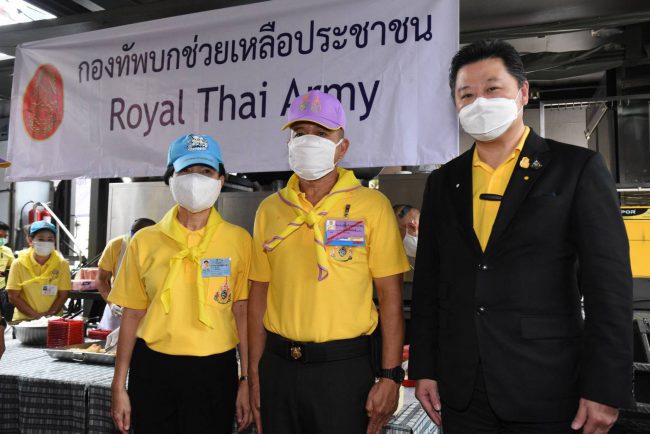 จากนั้น พลเอกณรงค์พันธ์ และนายสุภกิต ร่วมแจกจ่ายอาหารปรุงสุก พร้อมน้ำดื่มให้แก่พี่น้องประชาชนรวม 10,000 คน พื้นที่ 9 ชุมชน ใน 7 เขตกรุงเทพมหานคร โดยได้รับการสนับสนุนวัตถุดิบในการปรุงอาหารจาก CP และ CPF ประกอบด้วย เนื้อไก่สด 1,300 กิโลกรัม ไข่ไก่ 11,000 ฟอง ข้าวสาร 1,000 กิโลกรัม พร้อมกับน้ำดื่ม 10,000 ขวด