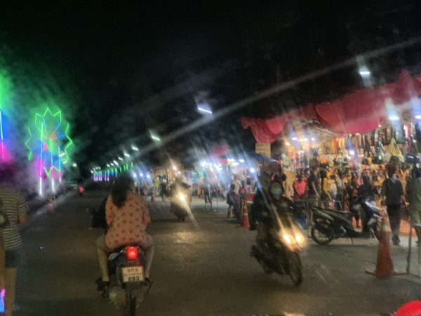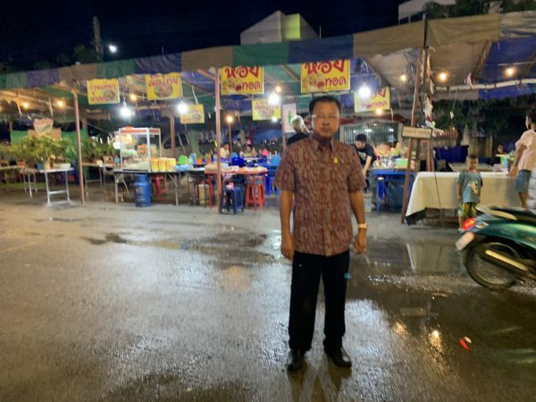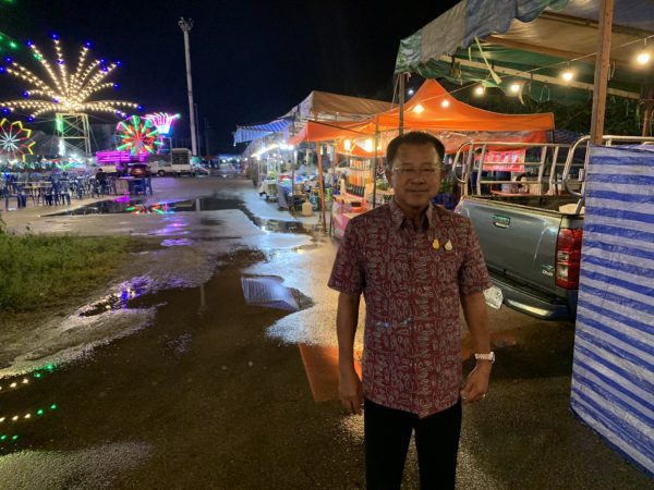 ต่อจากนั้น ไปตรวจเยี่ยมงานเกษตรแฟร์และของดีอำเภอหัวหิน ได้รับผลกระทบจากพายุฝน ร้านค้าเปิดขายของ. มีประชาชนมาเที่ยวงานเพียงเล็กน้อย ค่อนข้างเงียบ มา 2-3 วันแล้ว เพราะฝนตกหนักทุกวัน