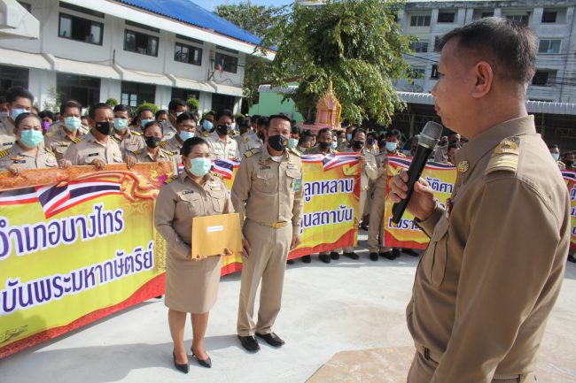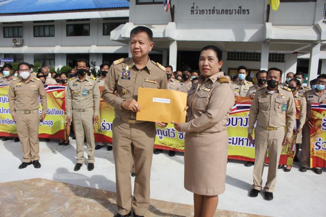 วันที่ 21 ต.ค.63 ที่ หน้าที่ว่าการอำเภอบางไทร จ.พระนครศรีอยุธยา ได้มีกำนัน ผู้ใหญ่บ้าน ผู้ช่วยผู้ใหญ่บ้าน สารวัตรกำนัน แพทย์ประจำตำบล นำโดย กำนันสุมาลี จิตรัตน์ ประธานชมรมกำนันผู้ใหญ่บ้านอำเภอบางไทร อำเภอพระนครศรีอยุธยา กำนันทองสุข เดชาประแสริฐ ที่ปรึกษาชมรมกำนันผู้ใหญ่บ้านอำเภอบางไทร กำนันจะเด็ด สาสาร กำนันตำบลสนามชัย ประชาสัมพันธ์ชมรมกำนันผู้ใหญ่บ้านอำเภอบางไทร