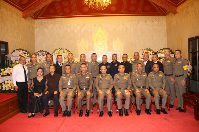 วันพุธที่ 21 ตุลาคม 2563 พลตำรวจเอกภาณุพงศ์ สิงหรา ณ อยุธยา, พลตำรวจเอกปิยะ อุทาโย รอง ผบ.ตร., พลตำรวจโทมนตรี ยิ้มแย้ม ผบช.ปส., พลตำรวจโทเชษฐา โกมลวัฒนะ จตร.(หน.จต.) พร้อมเพื่อน นรต.รุ่น38 ร่วมฟังสวดพระอภิธรรมศพ สิบเอกวิชัย เลี่ยมสงวน บิดาของ พลตำรวจตรีนภันต์วุฒิ เลี่ยมสงวน ผบก.สส.ภ.8