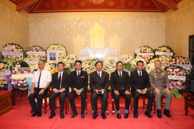 โดยมี พลตำรวจเอกวินัย ทองสอง อดีต รอง ผบ.ตร., พลตำรวจตรีประยนต์ ลาเสือ อดีต ผบก.สส.บช.น., พลตำรวจตรีวิชาญญ์วัชร์ บริรักษ์กุล อดีต ผบก.น 1, นายอนันต์ นิลมานนท์ นายกสมาคมหนังสือพิมพ์ส่วนภูมิภาคแห่งประเทศไทย (สภท.55ปี), นายธีระยุทธ ภู่พัฒน์ บก.อาวุโส นสพ. พิมพ์ไทย, นายธวัชชัย เฟื่องอนันต์ กรรมการสมาคม สภท.55ปี แขกผู้มีเกียรติและสื่อมวลชนร่วมฟังสวดอภิธรรม ณ วัดมกุฎกษัตริยารามราชวรวิหาร (ศาลา 10) ถ.ราชดำเนินนอก กรุงเทพมหานคร
