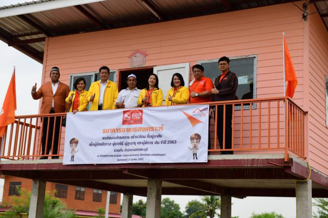 วันนี้ 27 ตุลาคม 2563 นายยุทธนา หยิมการุณ อธิบดีกรมธนารักษ์ และประธานกรรมการบริหารธนาคารอาคารสงเคราะห์ (ธอส.) พร้อมด้วยนางสุดจิตตรา คำดี ผู้ช่วยกรรมการผู้จัดการ สายงานสื่อสารและภาพลักษณ์องค์กร รักษาการผู้อำนวยการฝ่ายสื่อสารองค์กร และคณะ เดินทางไปส่งมอบบ้านจำนวน 3 หลัง และเครื่องอุปโภค – บริโภค ภายใต้โครงการสร้าง/ซ่อม ที่อยู่อาศัยเพื่อผู้ด้อยโอกาส ผู้ยากไร้ ผู้สูงอายุ และผู้พิการ ประจำปี พ.ศ. 2563 ณ ตำบลคลองพระยาบันลือ อำเภอลาดบัวหลวง จังหวัดพระนครศรีอยุธยา ในการนี้ นายธเนศ พิทักษ์วงศ์ ผู้จัดการสาขา รักษาการผู้จัดการเขตสระบุรี ให้การต้อนรับ