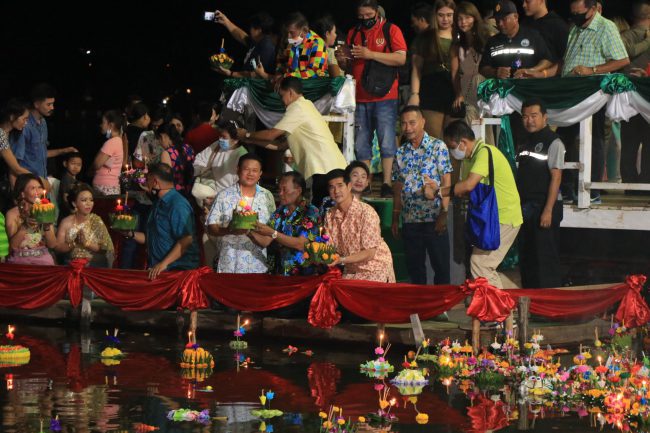 หัวหิน – 31 ต.ค. 63นายนพพร วุฒิกุล นายกเทศมนตรีเมืองหัวหิน เป็นประธานเปิดงานประเพณีลอยกระทง ณ อ่างเก็บน้ำเขาเต่าตามพระราชดำริ ต.หนองแก อ.หัวหิน ซึ่งปีนี้จัดขึ้นภายไต้แนวคิด “ลอยกระทงจันทร์เพ็ญเขาเต่า 63” โดยมี พ.ต.อ. นรเศรษฐ์ สุวรรณนิกขะ รองผู้บังคับการ กองบังคับการตำรวจท่องเที่ยว 3 กองบัญชาการตำรวจท่องเที่ยวนางสาวบุษบา โชคสุชาติ รองนายกเทศมนตรี