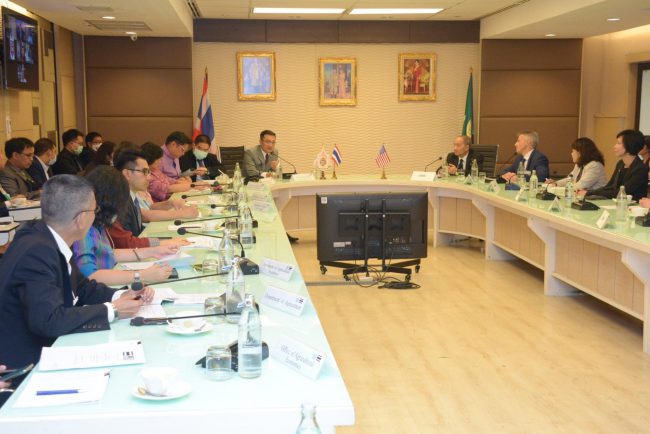 วันที่ 24 พฤศจิกายน 2563 นายนราพัฒน์ แก้วทอง ผู้ช่วยรัฐมนตรีประจำกระทรวงเกษตรและสหกรณ์ ได้รับมอบหมายจากรัฐมนตรีว่าการกระทรวงเกษตรและสหกรณ์ (นายเฉลิมชัย ศรีอ่อน) หารือร่วมกับนายอเล็กซานเดอร์ ซี เฟลด์แมน ประธานสภาธุรกิจสหรัฐอเมริกา – อาเซียน (US- ASEAN Business Council : USABC) และคณะธุรกิจซึ่งเป็นผู้แทนบริษัทชั้นนำของสหรัฐอเมริกา เพื่อส่งเสริมการดำเนินธุรกิจระหว่างไทยกับสหรัฐอเมริกา และหาแนวทางที่ภาคเอกชนสหรัฐอเมริกา สามารถสนับสนุนให้ประเทศไทยบรรลุเป้าหมายทางเศรษฐกิจ