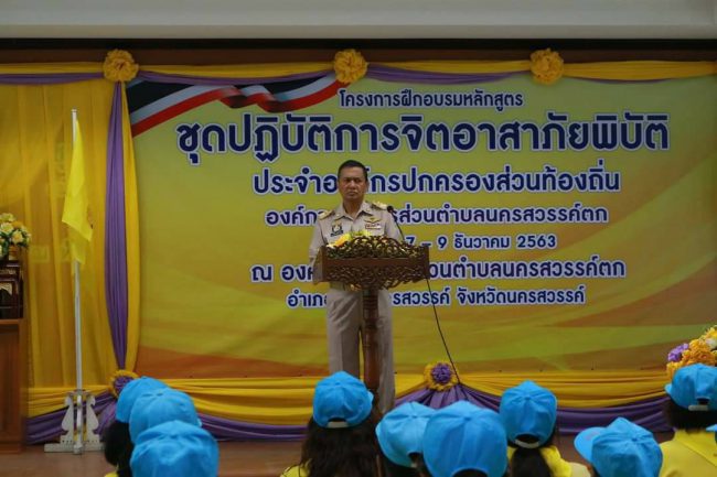 นครสวรรค์ – ผู้ว่าราชการจังหวัดนครสวรรค์ ประธานเปิดโครงการฝึกอบรมชุดปฏิบัติการจิตอาสาภัยพิบัติ ขององค์การบริหารส่วนตำบลนครสวรรค์ตก