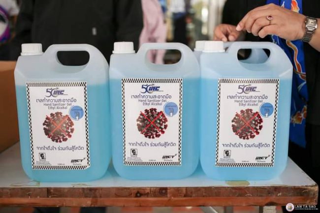 นายกเทศมนตรีเมืองลำตาเสา พร้อมด้วยคณะผู้บริหารฯ ประธานสภาฯ สมาชิกสภาฯ ร่วมรับมอบเจลแอลกอฮอล์จาก บริษัท IRC-วังน้อย  (ป้องกันเชื้อไวรัสโควิด-19)