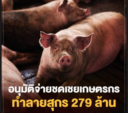 “เฉลิมชัย”เดินหน้าต่อดันไทยรักษาแชมป์อาเซียนปลอดโรคอหิวาต์แอฟริกาหนุนผลิตสุกรและอุตสาหกรรมแปรรูป150,000ล้านหลังครม.อนุมัติงบกลาง 279 ล้านบาท ชดเชยให้เกษตรกรที่ทำลายหมูตามมาตรการป้องกันโรค
