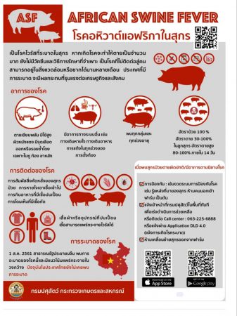 ในช่วง 2 ปีที่ผ่านมาประเทศไทยประสบความสำเร็จอย่างต่อเนื่องในการป้องกันการแพร่ระบาดโรคอหิวาต์แอฟริกาในสุกร (ASF) ส่งผลให้ประเทศไทยคงสถานะปลอดโรคอหิวาต์แอฟริกาในสุกรเพียงประเทศเดียวในเอเชียตะวันออกเฉียงใต้ แม้ว่าสถานการณ์การแพร่ระบาดของโรคจะกระจายไปกว่า 34 ประเทศทั่วโลกแล้วก็ตาม ทำให้การส่งออกสุกรในปีที่ผ่านมาเพิ่มขึ้นมากกว่า 300% จากปี 2562 คิดเป็นมูลค่ากว่า 22,000 ล้านบาท และเชื่อมั่นว่าการส่งออกในปีนี้จะเพิ่มขึ้น