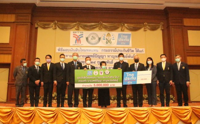 พิธีมอบเงินชดเชย สินไหมทดแทน กรมธรรม์ประกันชีวิต จำนวนเงิน 5 ล้านบาท ให้แก่ ทายาทนายแพทย์ปัญญา หาญพาณิชพันธุ์ (แพทย์ผู้เสียสละ)