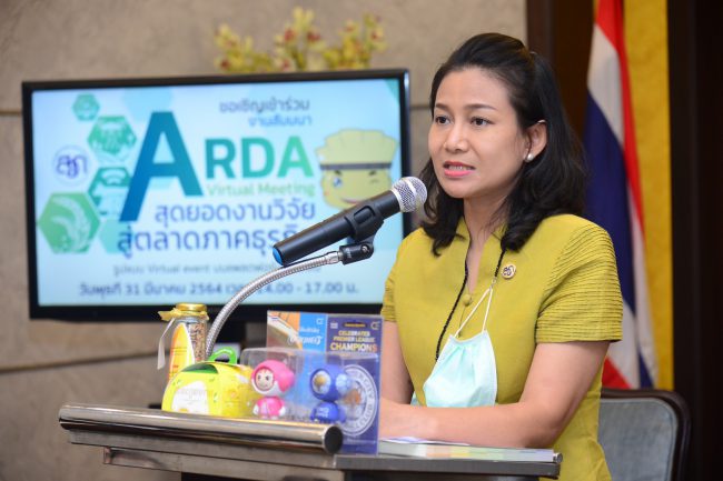 กระทรวงเกษตรและสหกรณ์ โดยสวก. จะจัดงาน “ARDA Virtual Meeting : สุดยอดงานวิจัย สู่ตลาดภาคธุรกิจ” ในรูปแบบ Virtual Event บนแพลตฟอร์มออนไลน์ จับมือผู้ประกอบการภาคเอกชน 4 บริษัท ได้แก่ บริษัท วี ฟู้ดส์ (ประเทศไทย) จำกัด บริษัท บางกอก ดรัก จำกัด บริษัท เจอาร์ แลบโบราทอรี่ จำกัด และห้างหุ้นส่วนจำกัด บุก ไทย จันทรา นำผลงานวิจัยไปสู่ตลาด พร้อมโชว์ผลิตภัณฑ์จากงานวิจัยเด่น อาทิ อาหารว่างดัดแปลงเนื้อสัมผัสพร้อมรับประทาน มาการีนจากน้ำมันรำข้าว อาหารเจลจากข้าวกล้องสี เครื่องดื่มฟังก์ชันข้าวไทย สารออกฤทธิ์จากใบบัวบกสำหรับการนำไปพัฒนาตำรับยาทาภายนอก และชุดตรวจคัดแยกมะละกอปลอด GM โดยกิจกรรมเปิดตลาดชอปปิ้งงานวิจัยบนแพลตฟอร์มออนไลน์ จะจัดขึ้นในวันพุธที่ 31 มีนาคม 2564 เวลา 14.00 – 17.00 น. ซึ่งแสดงให้เห็นถึงศักยภาพของผลงานวิจัยที่ตอบโจทย์และสามารถนำไปใช้ประโยชน์ได้จริง เป็นจุดเริ่มในการผลักดันให้เกิดการลงทุนทางธุรกิจของภาคเอกชนในอุตสาหกรรมอาหาร ซึ่งสามารถก่อให้เกิดมูลค่าทางทางเศรษฐกิจและสังคม
