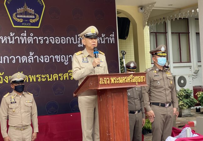 อยุธยา – จังหวัดพระนครศรีอยุธยาร่วมกับตำรวจภูธรจังหวัดพระนครศรีอยุธยา ปล่อยแถวระดมกวาดล้างอาชญากรรมในห้วงหยุดยาววันสงกรานต์ ประจำปี 2564