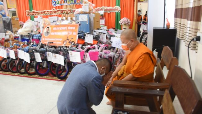 พระครูอนุกูลศาสนกิจกล่าวให้โอวาทกับเด็กๆทุกคนให้รักพ่อแม่และเป็นคนดีของสังคม ยึดคำสอนของพ่อแม่และคุณครู ที่สำคัญต้องมีคุณธรรม จะได้เติบโตมีอนาคต ภายในงานมีการเลี้ยงอาหารกลางวันให้กับนักเรียนที่มาร่วมงาน ซึ่งอาหารที่นำมาเลี้ยงในวันนี้ มีหลากหลายเช่นสเต๊ก ขนมจีนน้ำยา ขนม อาหารญี่ปุ่น ที่ส่วนใหญ่เป็นลูกศิษย์ของพระครูอนุกูลศาสนกิจ นำมาร่วมโดยไม่คิดค่าใช้จ่าย ถือเป็นการทำบุญ ภายหลังจากการแจกของขวัญให้กับนักเรียนจำนวน 163 คนที่ส่วนใหญ่เป็นจักรยานและของขวัญมากมาย