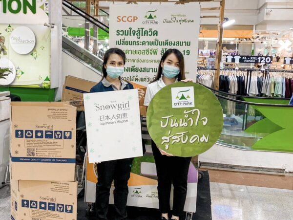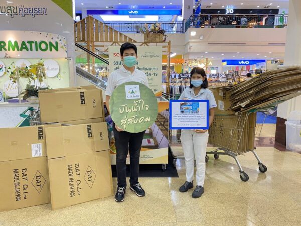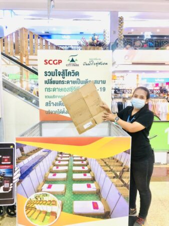 จากที่ศูนย์การค้าอยุธยาซิตี้พาร์ค เข้าร่วมโครงการ “รวมใจสู้โควิดเปลี่ยนกระดาษเป็นเตียงสนามเอสซีจีพี” ร่วมกับ บริษัทเอสซีจี แพคเกจจิ้ง จำกัด (มหาชน) หรือ SCG ในการเปิดรับบริจาคกล่องกระดาษลูกฟูกเหลือใช้ นำไปรีไซเคิลผลิตเป็นเตียงสนามกระดาษเอสซีจีพี (SCGP Paper Field Hospital Bed) เพื่อมอบให้แก่โรงพยาบาลสนามทั่วประเทศไว้รองรับผู้ป่วยติดเชื้อโควิด-19 ตั้งแต่วันที่ 27 เมษายน – 31 พฤษภาคม 2564 นั้น