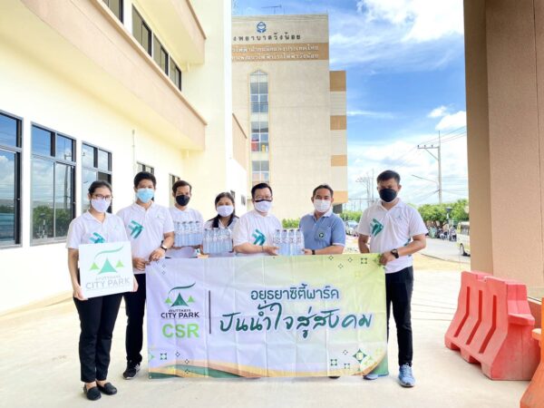ดร.สมพล รัชตพิมลชัย ประธานเจ้าหน้าที่บริหารการตลาด และเจ้าหน้าที่ศูนย์การค้าอยุธยาซิตี้พาร์ค ร่วมสนับสนุนน้ำดื่มจำนวนกว่า 1,000 ขวด มอบให้แก่โรงพยาบาลวังน้อย จังหวัดพระนครศรีอยุธยา