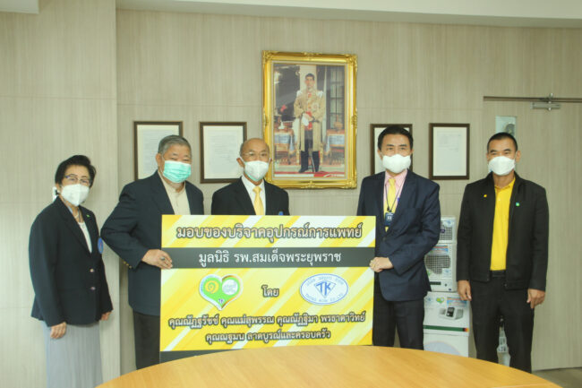 โดยมอบให้กับ ศาสตราจารย์เกียรติคุณ นายแพทย์ เกษม วัฒนชัย องคมนตรี ประธานกรรมการมูลนิธิโรงพยาบาลสมเด็จพระยุพราช เป็นผู้รับมอบ เพื่อจัดซื้อเครื่องให้อากาศผสมออกชิเจนด้วยอัตราการไหลสูง (High flow) และอุปกรณ์การแพทย์ สนับสนุนโครงการจิตอาสาร่วมมือป้องกันภัย COVID-19 โรงพยาบาลสมเด็จพระยุพราช ในวันที่ 30 ก.ค.2564 เวลา 10.30 น. ณ ห้องประชุมสำนักงานมูลนิธิโรงพยาบาลสมเด็จพระยุพราช ชั้น7 อาคาร3 สำนักงานปลัดกระทรวงสาธารณสุข จังหวัดนนทบุรี โดยมี นายแพทย์จักรธรรม ธรรมศักดิ์ กรรมการและเลขาธิการมูลนิธิโรงพยาบาลสมเด็จพระยุพราช ร่วมพิธี โดย ศาสตราจารย์เกียรติคุณ นายแพทย์ เกษม วัฒนชัย องคมนตรี ประธานกรรมการมูลนิธิโรงพยาบาลสมเด็จพระยุพราช ได้กล่าวขอบคุณ ‘เสี่ยทศ ชนแดน’ นายณัฏฐรัชช์ พรธาดาวิทย์ กรรมการผู้จัดการบริษัท ทองขาว จำกัด และประธานกองทุนจิตอาสา ทองขาว ๙ พอเพียง พร้อมคุณแม่สุพรรณ – คุณณัฏฐิมา พรธาดาวิทย์, คุณณฐมน ลาดบูรณ์ และครอบครัว ในการที่มีจิตกุศล บริจาคทรัพย์เพื่อซื้ออุปกรณ์การแพทย์ ช่วยเหลือบุคลากรทางการแพทย์และผู้ป่วยโควิดในครั้งนี้ด้วย