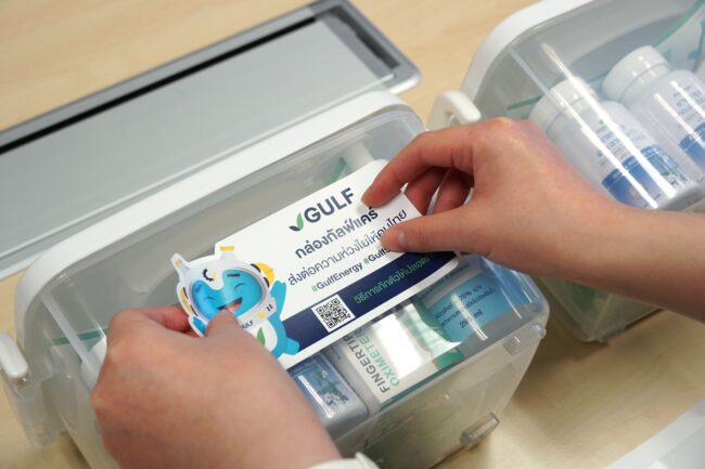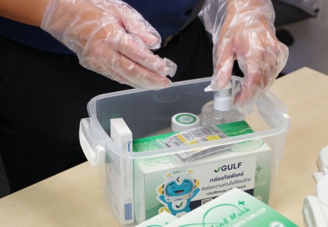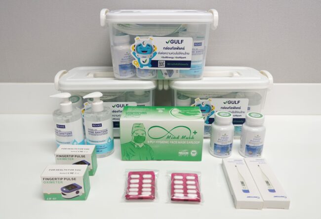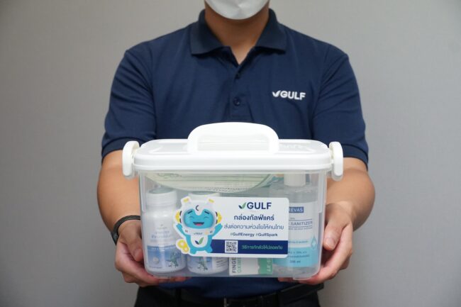 นายสิตมน รัตนาวะดี ผู้ช่วยผู้จัดการฝ่ายวางแผนธุรกิจ ตัวแทนบริษัท กัลฟ์ เอ็นเนอร์จี ดีเวลลอปเมนท์ จำกัด (มหาชน) กล่าวว่า จากยอดผู้ติดเชื้อโควิด-19 ที่เพิ่มสูงขึ้นต่อเนื่อง มีผู้ป่วยจำนวนมากที่อยู่ระหว่างการแยกรักษาตัวเองที่บ้าน (Home Isolation) หรือแยกรักษาตัวในชุมชน (Community Isolation) บางกลุ่มอาจอยู่ระหว่างรอเตียง ซึ่งหลายคนอาจยังไม่มีความพร้อมเรื่องยาและอุปกรณ์ในการตรวจเช็คอาการระหว่างรักษาตัวที่บ้าน ทาง GULF จึงทำกล่อง GULF CARE (กัลฟ์แคร์) ขึ้นมา โดยภายในกล่องประกอบด้วยเครื่องวัดออกซิเจนปลายนิ้ว ปรอทวัดไข้แบบดิจิทัล ยาพาราเซตามอล ยาแคปซูลฟ้าทะลายโจร หน้ากากอนามัย และเจลแอลกอฮอล์ ซึ่งเพียงพอสำหรับการรักษาตัวอย่างน้อย 14 วัน รวมทั้งมีคำแนะนำสำหรับการรักษาตนเองที่บ้านด้วย โดยทางเราหวังว่ากล่อง GULF CARE (กัลฟ์แคร์) จะเป็นอีกแรงที่ช่วยสนับสนุน ทำให้ผู้ป่วยมีอาการดีขึ้นหรือหายป่วยได้ในเร็ววัน