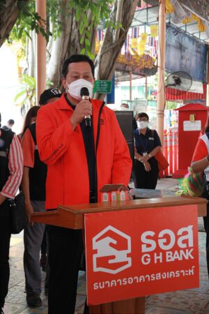 นายยุทธนา หยิมการุณ ประธานกรรมการ ธนาคารอาคารสงเคราะห์ (ธอส.) พร้อมด้วยนายฉัตรชัย ศิริไล กรรมการผู้จัดการ ธอส. และผู้ปฏิบัติงานของธนาคาร ได้นำถุงยังซีพ จำนวน 300 ชุด มอบให้แก่ผู้ประสบอุทกภัย ณ บริเวณวัดสะตือ ตำบลท่าหลวง อำเภอท่าเรือ จังหวัดพระนครศรีอยุธยา เมื่อช่วงเช้าวันนี้ (14 ตุลาคม 2564) เพื่อบรรเทาความเดือดร้อนในเบื้องต้น พร้อมทั้งรับฟังความต้องการของประชาชนในพื้นที่ประสบอุทกภัย