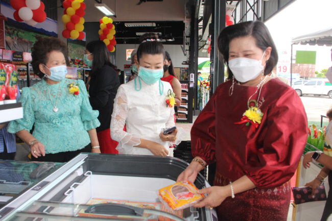 พร้อมผู้บริหาร และเจ้าหน้าที่ร่วมให้การต้อนรับแขกผู้มีเกียรติ ซึ่งร้าน หมูอินเทรนด์ ตู้เย็นของชุมชน แห่งนี้มีสินค้าราคาประหยัดไว้ให้ประชาชนในพื้นที่จังหวัดสิงห์บุรีหรือใกล้เคียง ได้เข้ามาจับจ่ายใช้สอยในราคาที่ประหยัดถูกสุดๆ โดยเฉพาะเนื้อวัว เนื้อหมู และเนื้อไก่ ตลอดทั้งของใช้ในครัวเรือน ของใช้ที่จำเป็นหลากหลาย รายการ อาทิ น้ำยาปรับผ้านุ่มซื้อ 1 แถม 2 มีประชาชนให้ความสนใจเข้ามาเลือกซื้อจับจ่ายกันอย่างเนืองแน่น และในโอกาสนี้มี