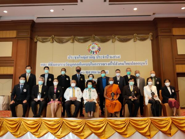 วันที่ 20 ตุลาคม 2564 ศ.เกียรติคุณ พญ. สมศรี เผ่าสวัสดิ์ ประธานสมาพันธ์เครือข่ายแห่งชาติเพื่อสังคมไทยปลอดบุหรี่/ประธานการประชุม ศ.นพ.รณชัย คงสกนธ์ เลขาธิการ นพ.วันชาติ ศุภจัตุรัส เหรัญญิก พร้อมด้วยคณะกรรมการอำนวยการสมาพันธ์ฯ และกรรมการสมาพันธ์เครือข่ายจังหวัด เข้าร่วมการประชุมในครั้งนี้ ภายใต้มาตรการป้องกันการแพทยระบาดของเชื้อไวรัสโคโรน่า โควิด19 โดยจัดให้มีการประชุมผ่านระบบออนไลน์ zoom ในการประชุมใหญ่สามัญประจำปี 2564 และประชุมคณะกรรมการอำนวยการสมาพันธ์ฯ ครั้งที่ 14 วันที่ 20 ตุลาคม 2564 เวลา 13.30-16.00น. โดยได้มีพิธีมอบรางวัลบุคคลต้นแบบในการณรงค์ให้สังคมไทยปลอดบหุรี่ประจําปี2564 จํานวน 5 รางวัล ณ ห้องประชุมสยามมกุฎราชกุมาร ชั้น P3 อาคารเฉลิมพระบารมี ๕๐ ปี แพทยสมาคมแห่งประเทศไทยฯ