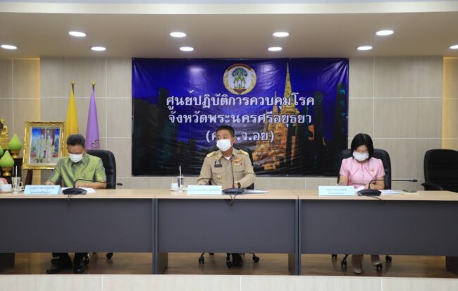 วันนี้ (9 พ.ย. 64) เมื่อเวลา 10.00 น. ที่ ห้องประชุมอโยธยา ศาลากลางจังหวัดพระนครศรีอยุธยา นายวีระชัย นาคมาศ (นาค-คะ-มาด) ผู้ว่าราชการจังหวัดพระนครศรีอยุธยา เป็นประธานการประชุมคณะกรรมการโรคติดต่อจังหวัดพระนครศรีอยุธยา ครั้งที่ 50/2564 เพื่อติดตามสถานการณ์การแพร่ระบาดของโรคติดเชื้อไวรัสโคโรนา 2019 (COVID-19) ของประเทศไทยและจังหวัดพระนครศรีอยุธยา