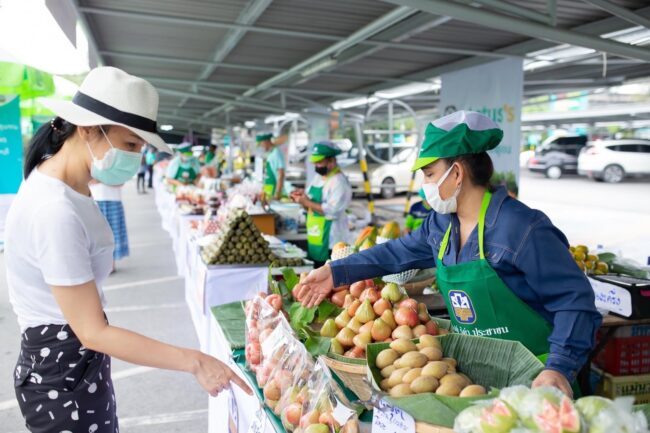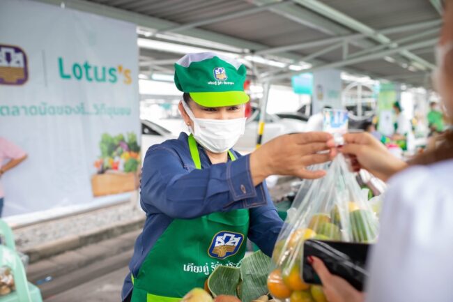 ส่วนหนึ่งของความร่วมมือระหว่างโลตัส และธนาคารเพื่อการเกษตรและสหกรณ์การเกษตร (ธ.ก.ส.) ที่เห็นได้อย่างเป็นรูปธรรมคือการสนับสนุนพื้นที่โดยไม่มีค่าใช้จ่าย ให้เกษตรกรในเครือข่ายของ ธ.ก.ส. ได้จำหน่ายสินค้าให้แก่ลูกค้าที่เข้ามาจับจ่ายใช้สอยในโลตัส สาขารามอินทรา ระหว่างวันที่ 8-11 พฤศจิกายน 2564 โดยมีแผนงานที่จะขยายไปสาขาอื่นๆต่อไป