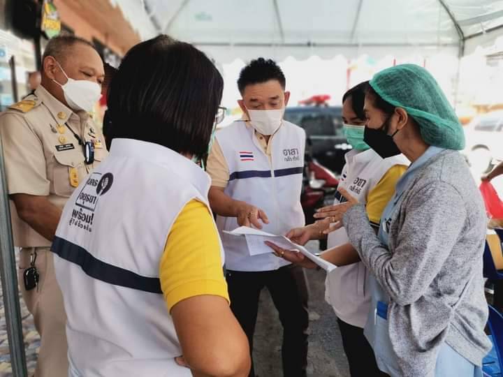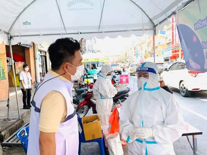 และคณะผู้บริหาร สมาชิกสภา ปลัด รองปลัด รักษาการผอ.สาธารณสุข หัวหน้าฝ่ายปกครอง คุณหมอสาธารณสุขเทศบาลฯ ร่วมกับ ทรัพย์สินพระมหากษัตริย์ สาธารณสุขจังหวัด นำเจ้าหน้าที่กองสาธารณสุข เจ้าหน้าที่งานเทศกิจ ลงพื้นที่้ชิงรุก ตั้งเต๊นท์ตรวจAtk พร้อมทั้งแจกแมส แอลกอฮอล์ ให้กับพ่อค้าแม่ค้าชาวตลาดหัวรอ เพื่อเป็นการป้องกันตัวเองเบื้องต้น