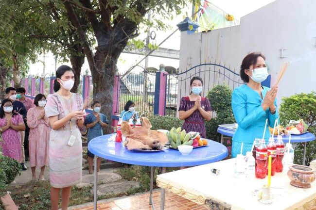 วันพฤหัสบดี ที่ 3 กุมภาพันธ์ 2565 เวลา 09.09 น. โรงเรียนวังน้อย(พนมยงค์วิทยา) จัดพิธีรำลึกเนื่องในวันครบรอบการสถาปนาโรงเรียนวังน้อย(พนมยงค์วิทยา) นางพรทิพย์ ไชยประณิธาน ผู้อำนวยการโรงเรียนวังน้อย(พนมยงค์วิทยา) พร้อมด้วย นางสาวไพลิน เปรมกมล รองผู้อำนวยการฯ คณะครู บุคลากรทางการศึกษา และนักเรียน ร่วมกันไหว้