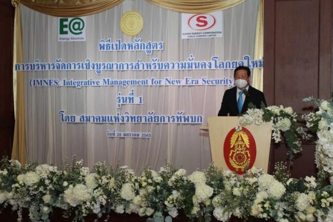 ดร.สุวิทย์ ธรณินทร์พานิช นายกสมาคมแห่งวิทยาลัยการทัพบก เปิดเผยวันนี้ (๒๘ มกราคม ๒๕๖๕) ขณะนี้สมาคมแห่งวิทยาลัยการทัพบก เปิดหลักสูตรการบริหารจัดการเชิงบูรณาการสำหรับความมั่นคงโลกยุคใหม่ (IMNES : Integrative Management for New Era Security) ซึ่งได้เปิดหลักสูตรฯ นี้เป็นครั้งแรกเพื่อเตรียมตัวให้พร้อมรับกับสถานการณ์ที่จะเกิดขึ้นในอนาคต จึงเปิดหลักสูตรให้ศึกษารื่องราวที่ผ่านมาในอดีต เป็นการเสริมสร้างความเข้าใจในสังคมปัจจุบัน และช่วยคาดการณ์ ประเมินอนาคตได้อย่างแม่นยำ เป็นการเตรียมความพร้อมที่จะรับกับเหตุการณ์ที่จะเกิดขึ้นได้เป็นอย่างดี