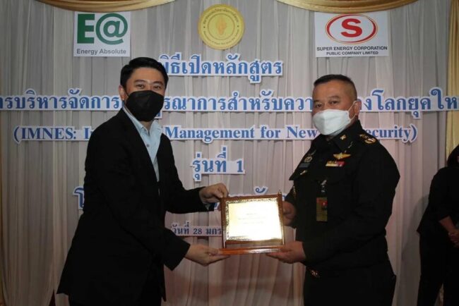 สำหรับวันนี้ นอกจากพิธีเปิดหลักสูตรฯ แล้ว ยังได้รับเกียรติอย่างสูงจาก พลโทมหศักดิ์ เทพหัสดิน ณ อยุธยา ผู้ทรงคุณวุฒิพิเศษกองทัพบก มอบโล่เกียรติคุณ ให้กับผู้สนับสนุนสมาคมฯ ได้แก่ บริษัท ซุปเปอร์ เอนเนอร์ยีคอร์เปอเรชั่น จำกัด (มหาชน) และบริษัท พลังงานบริสุทธิ์ จำกัด (มหาชน) และมอบอุปกรณ์ป้องกันไวรัสโควิค-๑๙ ให้กับศูนย์ปฏิบัติการทุ่นระเบิดแห่งชาติ และกรมสวัสดิการทหารบกและสโมสรทหารบก และมอบแผงผลิตพลังงานแสงอาทิตย์ (Solar cell) และแบตเตอรี่ ซึ่งได้รับการสนับสนุนจากมูลนิธิพลังงานสะอาดเพื่อประชาชน