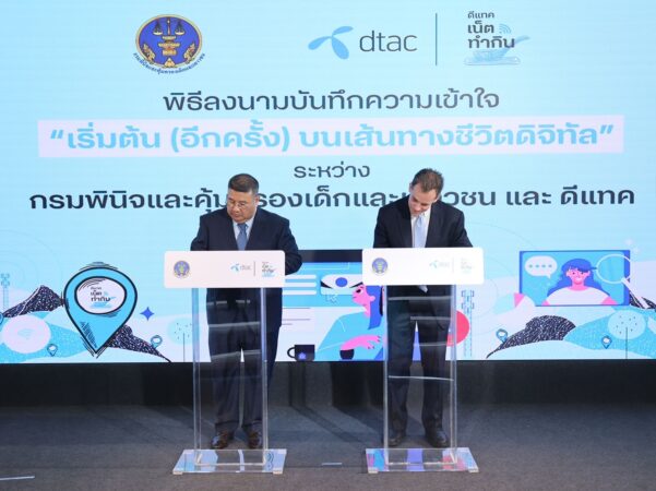 24 พฤศจิกายน 2565 – กรมพินิจและคุ้มครองเด็กและเยาวชน และดีแทค ร่วมลงนามในบันทึกความเข้าใจว่าด้วยการพัฒนาทักษะดิจิทัลเพื่อโอกาสในการทำอาชีพและทักษะการรับมือกับความเสี่ยงบนโลกออนไลน์ สำหรับเยาวชนในกระบวนการยุติธรรมทางอาญา ที่อยู่ในระหว่างการเตรียมความพร้อมก่อนปล่อยตัว ให้ได้เรียนรู้และส่งเสริมทัศนคติที่เป็นบวกต่อการใช้เทคโนโลยีดิจิทัลผ่านทั้งแพลตฟอร์ม e-Learning และภาคปฏิบัติ พร้อมกันนี้ ดีแทคเน็ตทำกินได้พัฒนาหลักสูตร “ดีแทค เน็ตทำกิน” บนแพลตฟอร์มออนไลน์ ร่วมกับสถาบันคุณวุฒิวิชาชีพ (องค์การมหาชน) ทั้งนี้ เยาวชนที่ได้รับการอบรม จะสามารถใช้เทียบสมรรถนะการเรียนรู้ตามมาตรฐาน เพื่อศึกษาต่อยอดหรือประกอบอาชีพในอนาคต คุ้มครองดูแลทุกมิติ ก่อนส่งกลับสู่สังคม