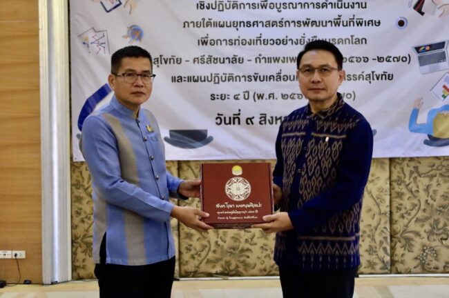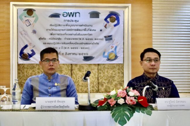 อพท.๔ ร่วมกับ สบย. จัดการประชุมแผนยุทธศาสตร์การพัฒนาพื้นที่พิเศษเพื่อการท่องเที่ยวอย่างยั่งยืนมรดกโลกสุโขทัย – ศรีสัชนาลัย – กำแพงเพชร (พ.ศ. ๒๕๖๖ – ๒๕๗๐) และแผนปฏิบัติการขับเคลื่อนเมืองสร้างสรรค์สุโขทัย ระยะ ๔ ปี (พ.ศ. ๒๕๖๗- ๒๕๗๐)
