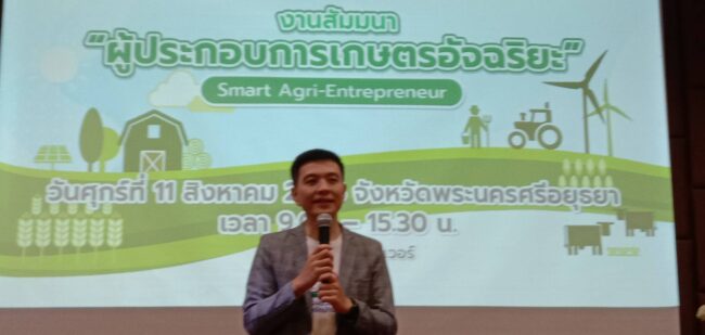 “เป้าหมายในการจัดสัมมนา คือการมอบความรู้ และเทคนิคดีๆ ในการต่อยอดธุรกิจเกษตร โดยใช้นวัตกรรม เทคโนโลยี เพื่อก่อให้เกิดประโยชน์ต่อธุรกิจ ชุมชน สังคม สิ่งแวดล้อม อย่างยั่งยืนต่อไป สาหรับโซนภาคกลางเราเลือกจัดงานที่จังหวัดพระนครศรีอยุธยา เนื่องจากเป็นศูนย์กลางการรวมตัวของเกษตรกรในโซนนี้” คุณณัฐวุฒิ กล่าว ในการสัมมนาฯ ครั้งนี้ได้รับเกียรติจากรองผู้ว่าราชการจังหวัดพระนครศรีอยุธยา เป็นประธานเปิดงาน ร่วมด้วย เกษตรจังหวัดพระนครศรีอยุธยา สานักงานส่งเสริมและพัฒนาการเกษตรที่ 1 จังหวัดชัยนาท และกลุ่มเกษตรกรในพื้นที่ภาคตะวันกลาง เข้าร่วมรับฟัง โดยหัวข้อการให้ความรู้สาหรับแนวคิดผู้ประกอบการเกษตรอัจฉริยะ ประจาปี 2566